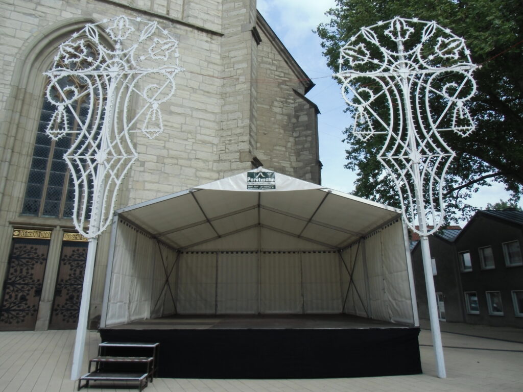 Abbildungen der Bühnen und Zubehör können vom Original und dem Ist-Zustand abweichen. Das Foto zeigt eine Bühne der Größe 6 x 6 Meter.