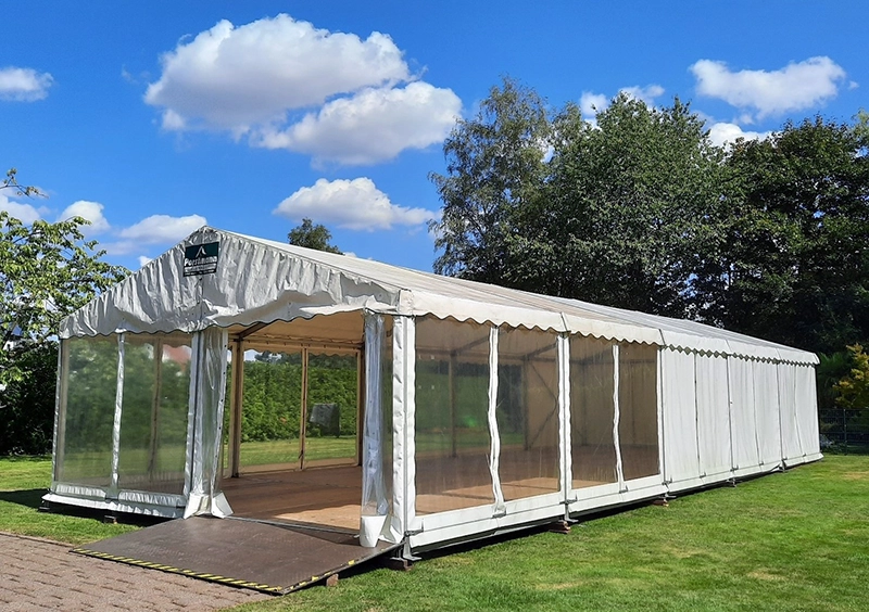 Abbildungen der Zelte und Zubehör können vom Original und dem Ist-Zustand abweichen. Das Foto zeigt ein Zelt der Größe 6 x 15 Meter.
